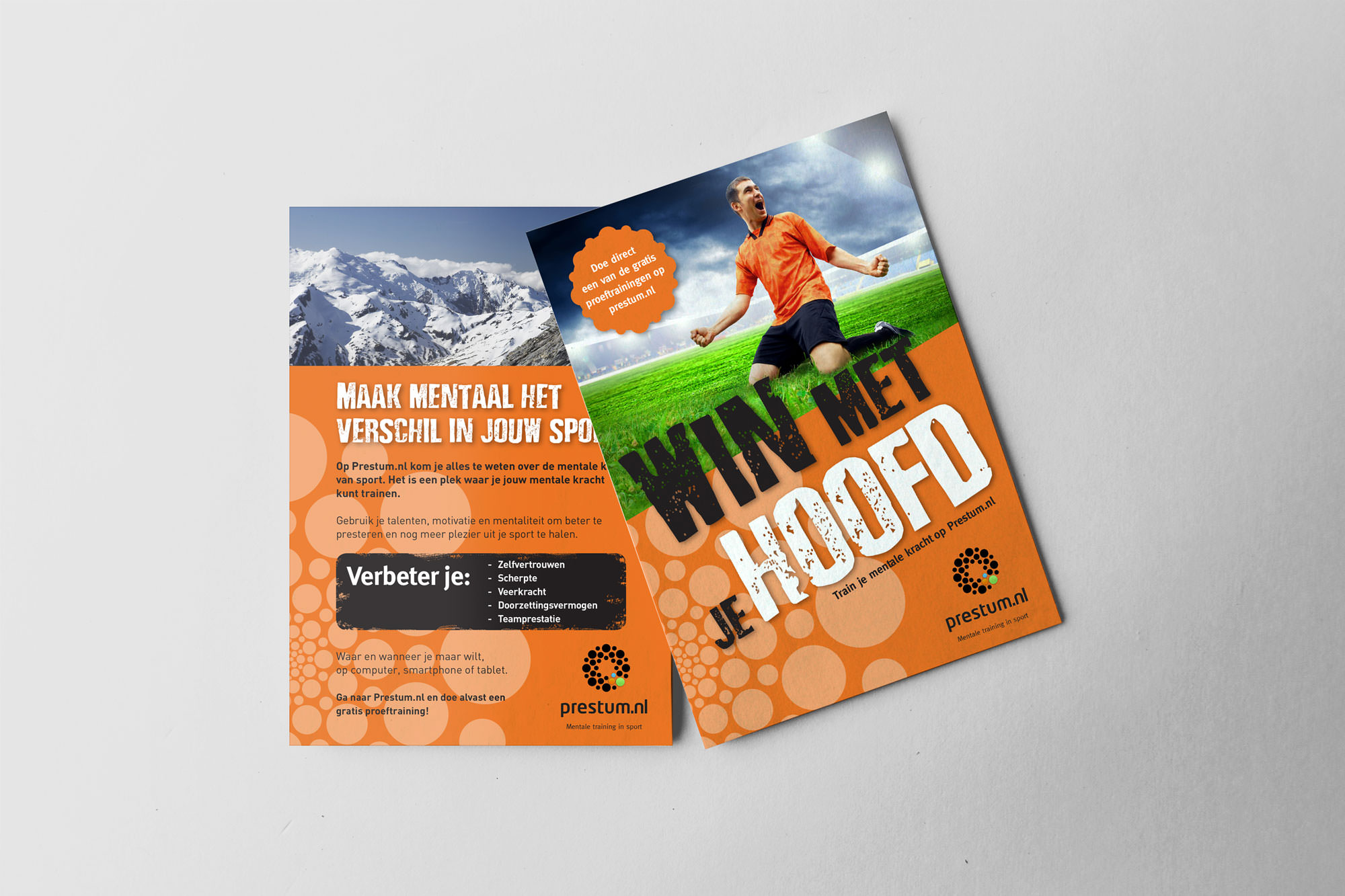 Prestum is een online platform waar ambitieuze sporters trainingen kunnen inkopen om hun prestaties door middel van mentale training te verbeteren. Voor Prestum zijn een aantal communicatiemiddelen ontwikkeld om hun diensten in de markt te zetten, waaronder een flyer en brochure. Daarnaast is er meegedacht en ontworpen aan de online trainingen in de vorm van afbeeldingen en illustraties die het proces verbeelden.